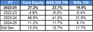 *Core Equity returns are from July 2022 onwards. The performance-related information provided herein is not verified by SEBI